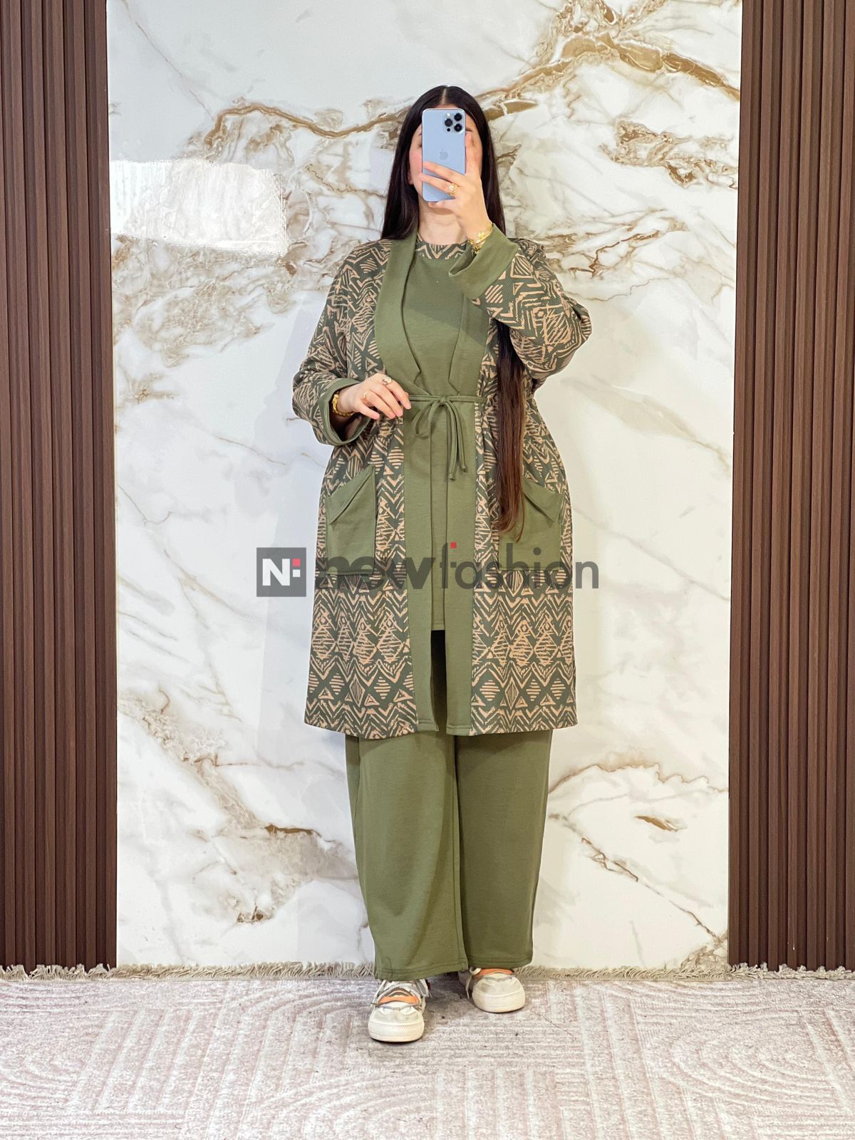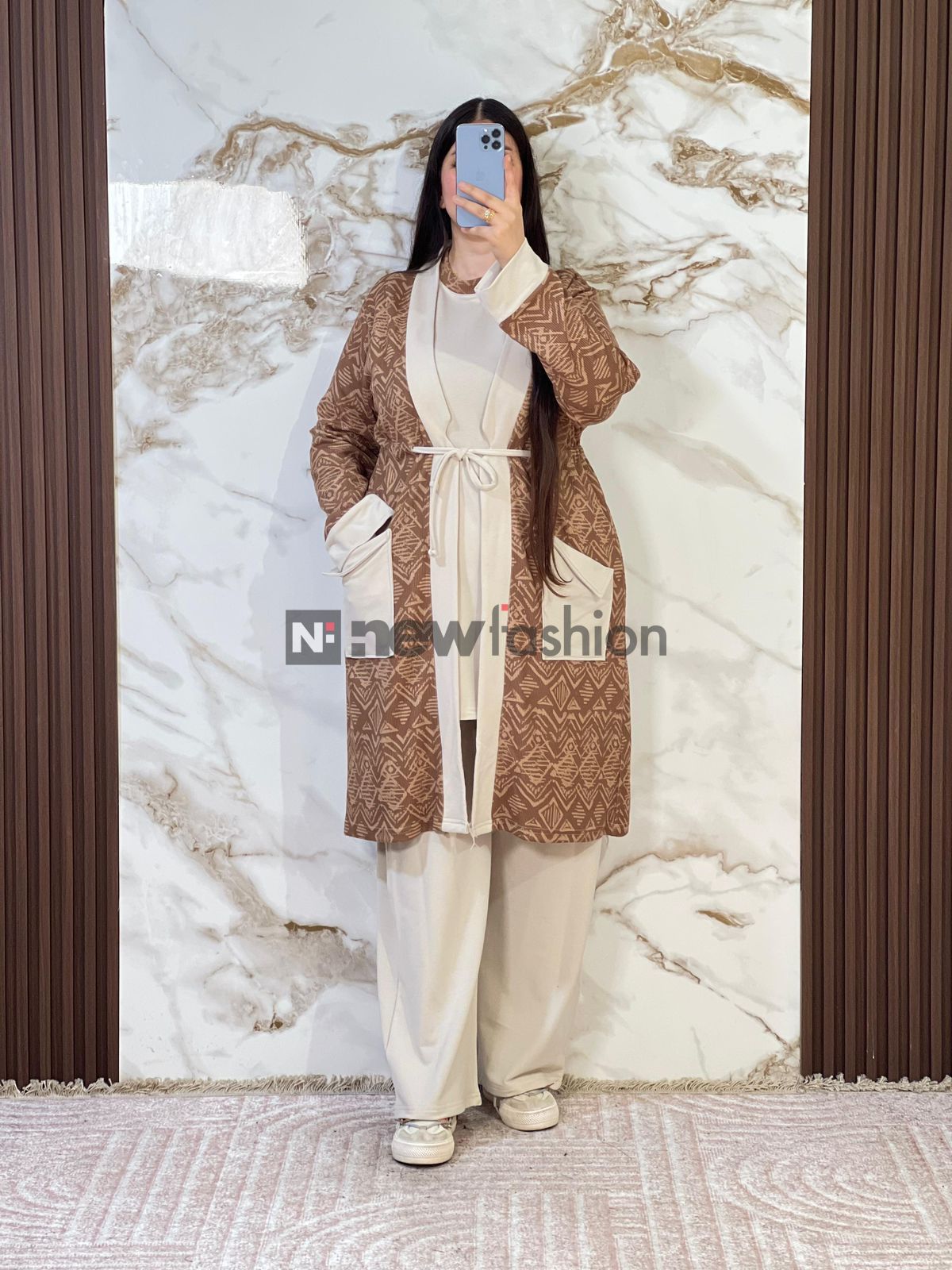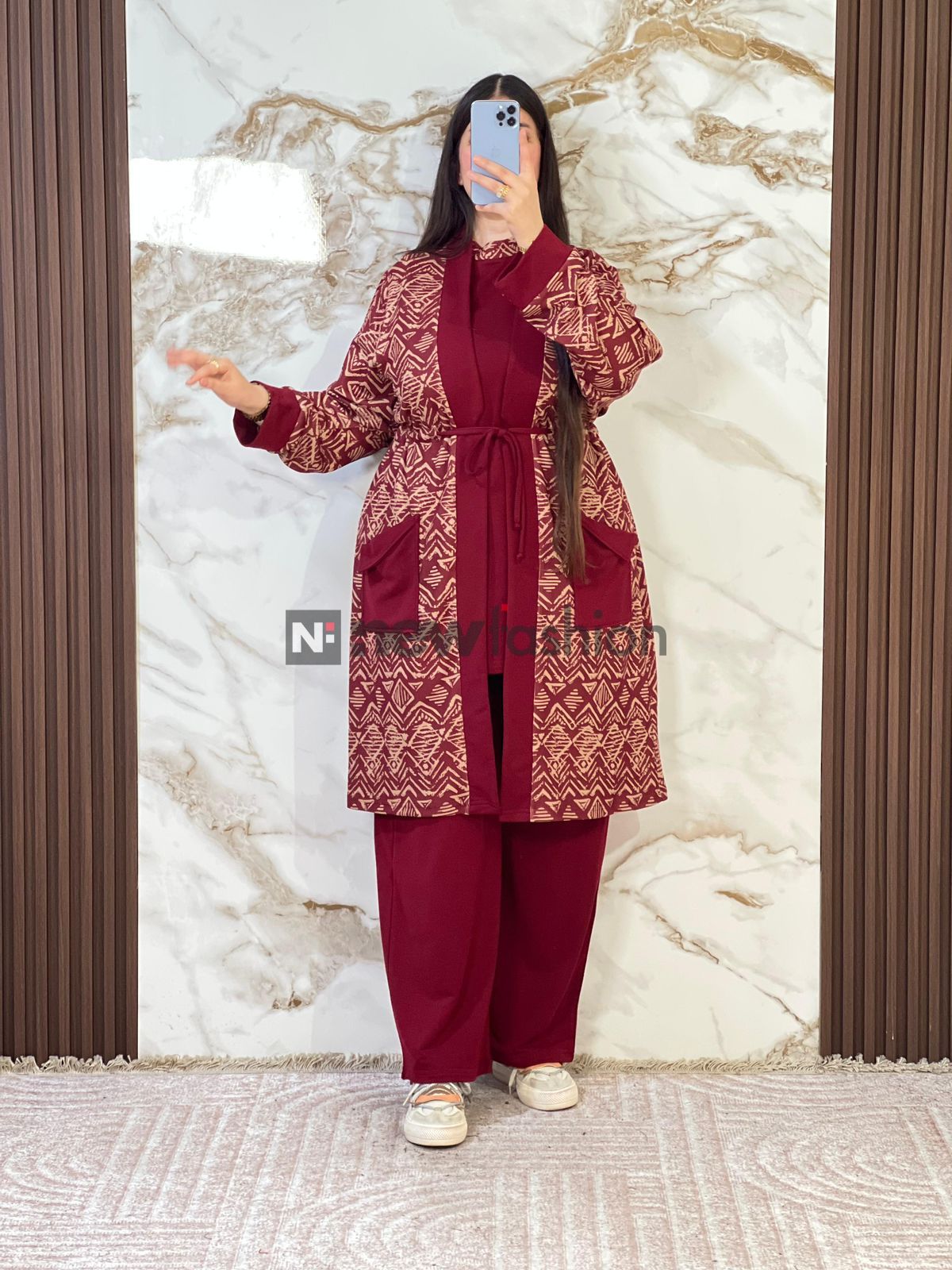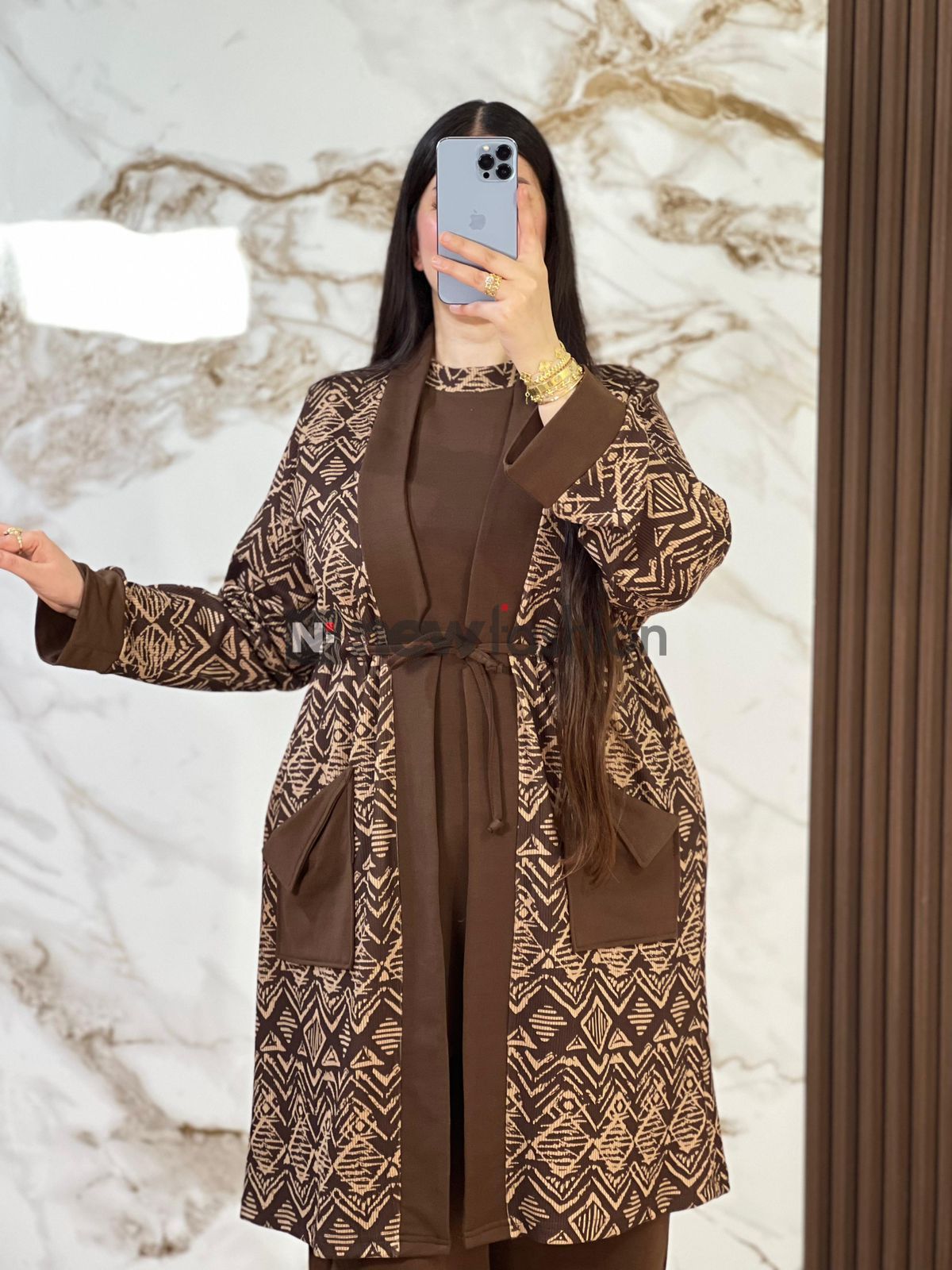 - كارديجان طويل: يتميز بنقوش هندسية راقية مع حزام خصر لإبراز الرشاقة، وجيوب جانبية عملية تضفي لمسة عصرية. 🧥