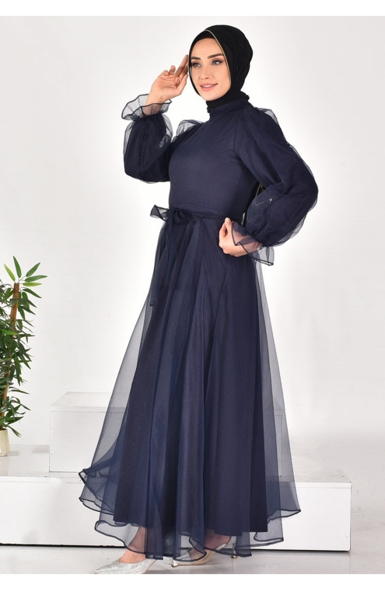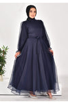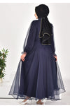 4384 Robe De Soirée Hijab à Ceinture En Tissu Dalya 4384-02 Bleu Marine 4384-02