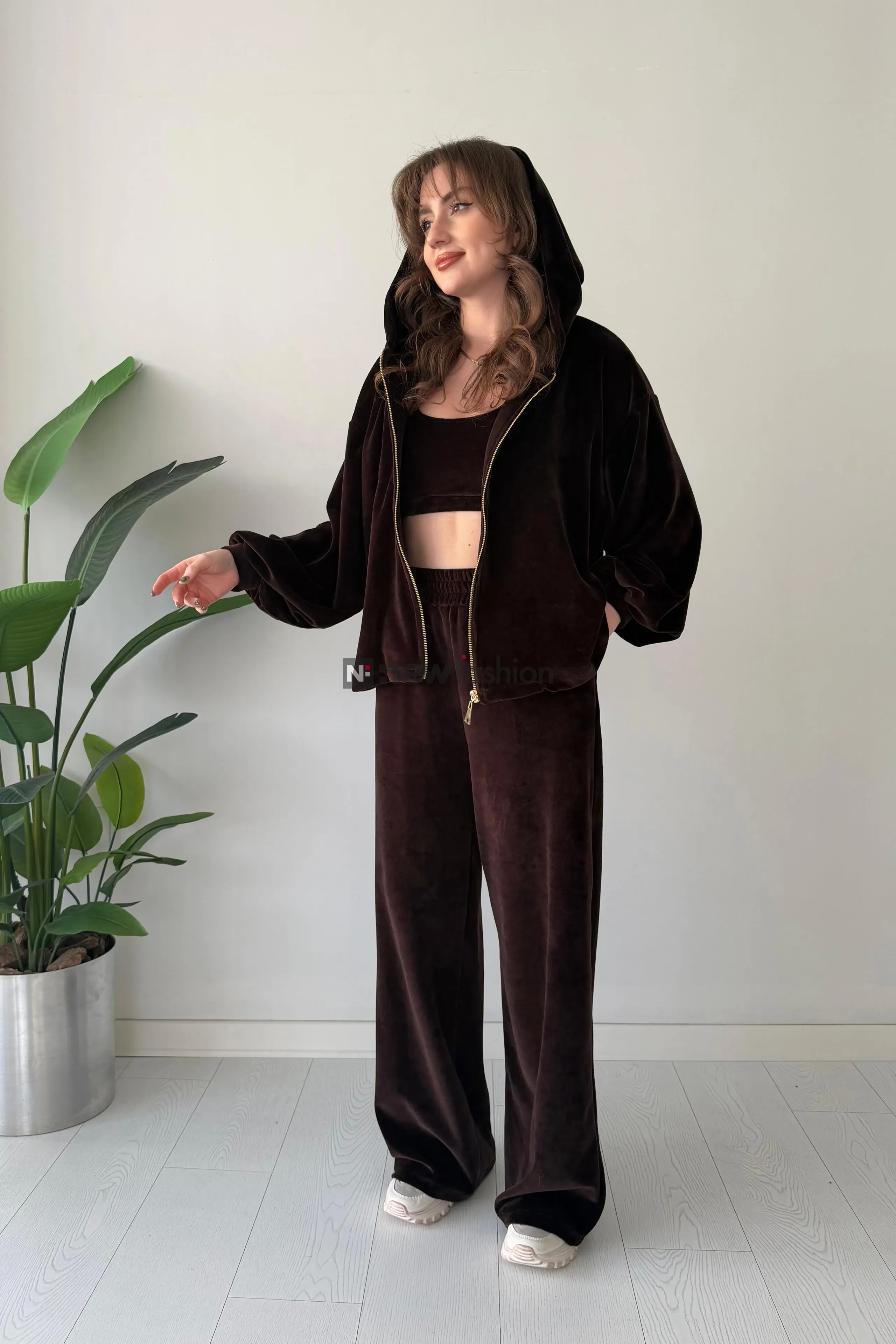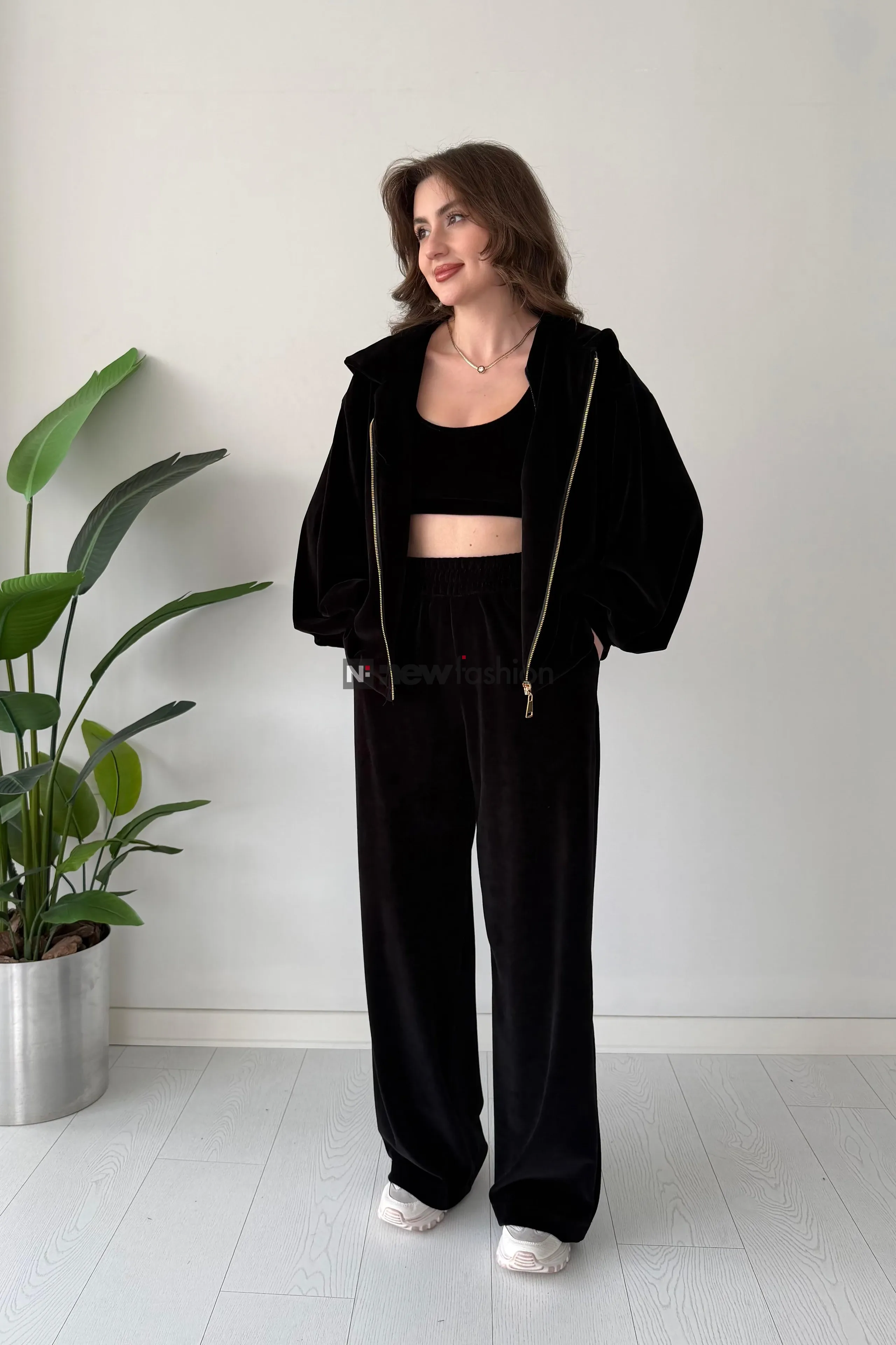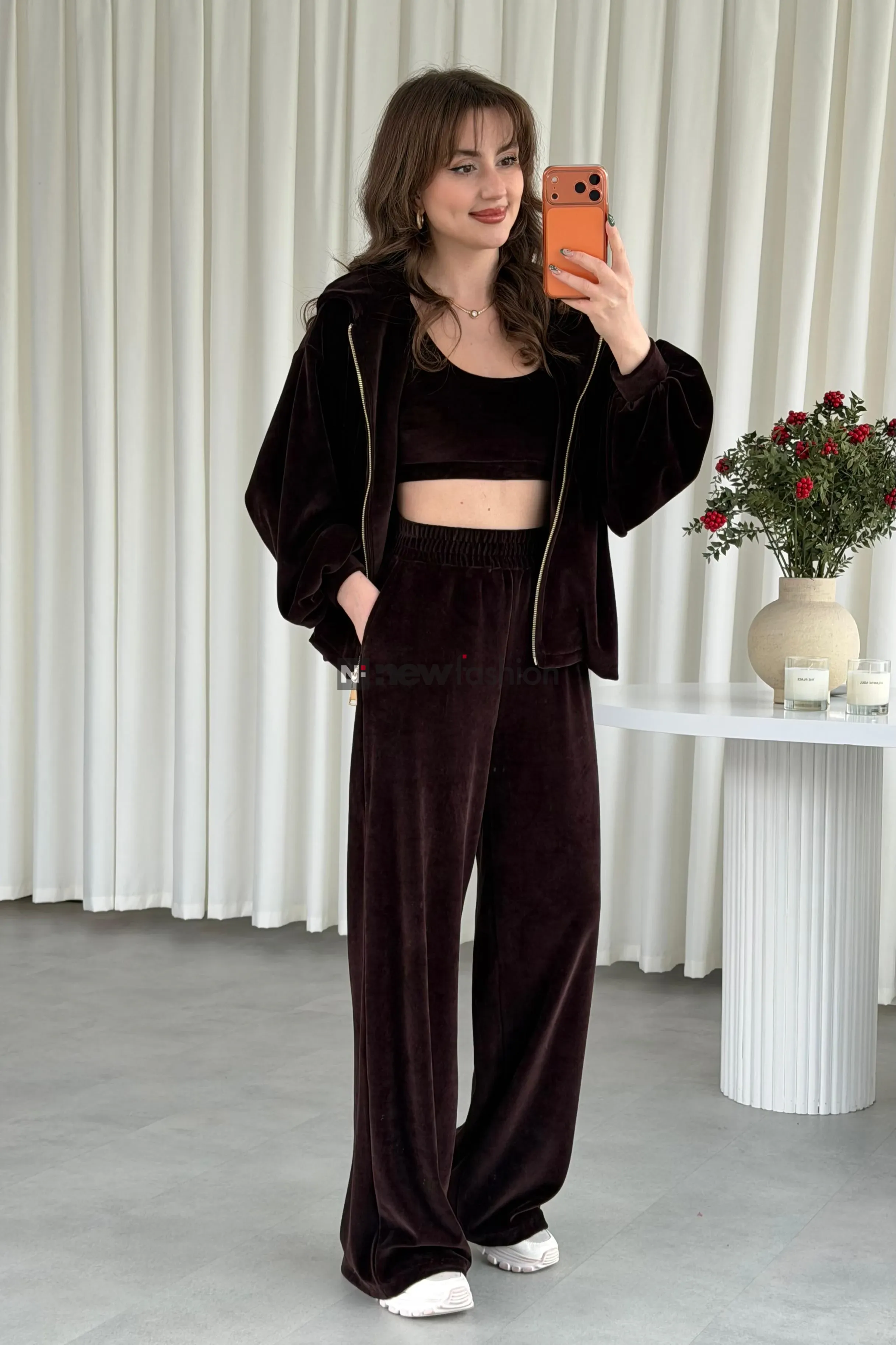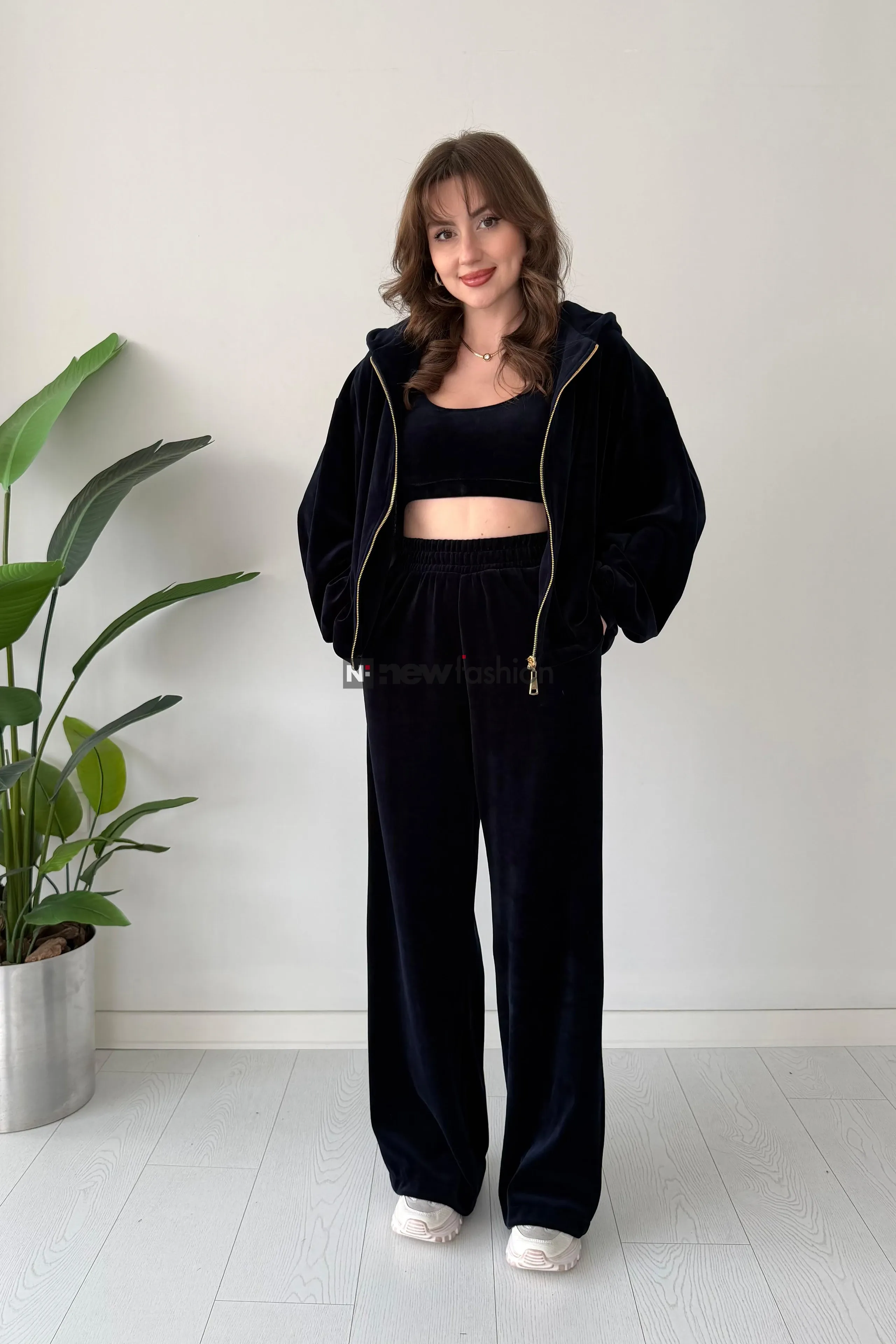 • 👚 3 قطع كاملة: (جيلي بسحاب + توب أنيق + سروال واسع ومريح). تقدري تلبسيهم كاملين أو تنسقي كل بياسة بوحدها.