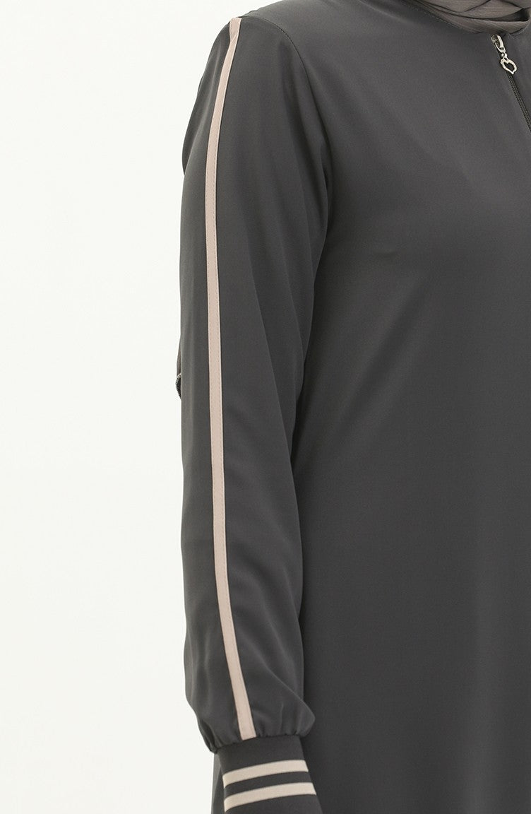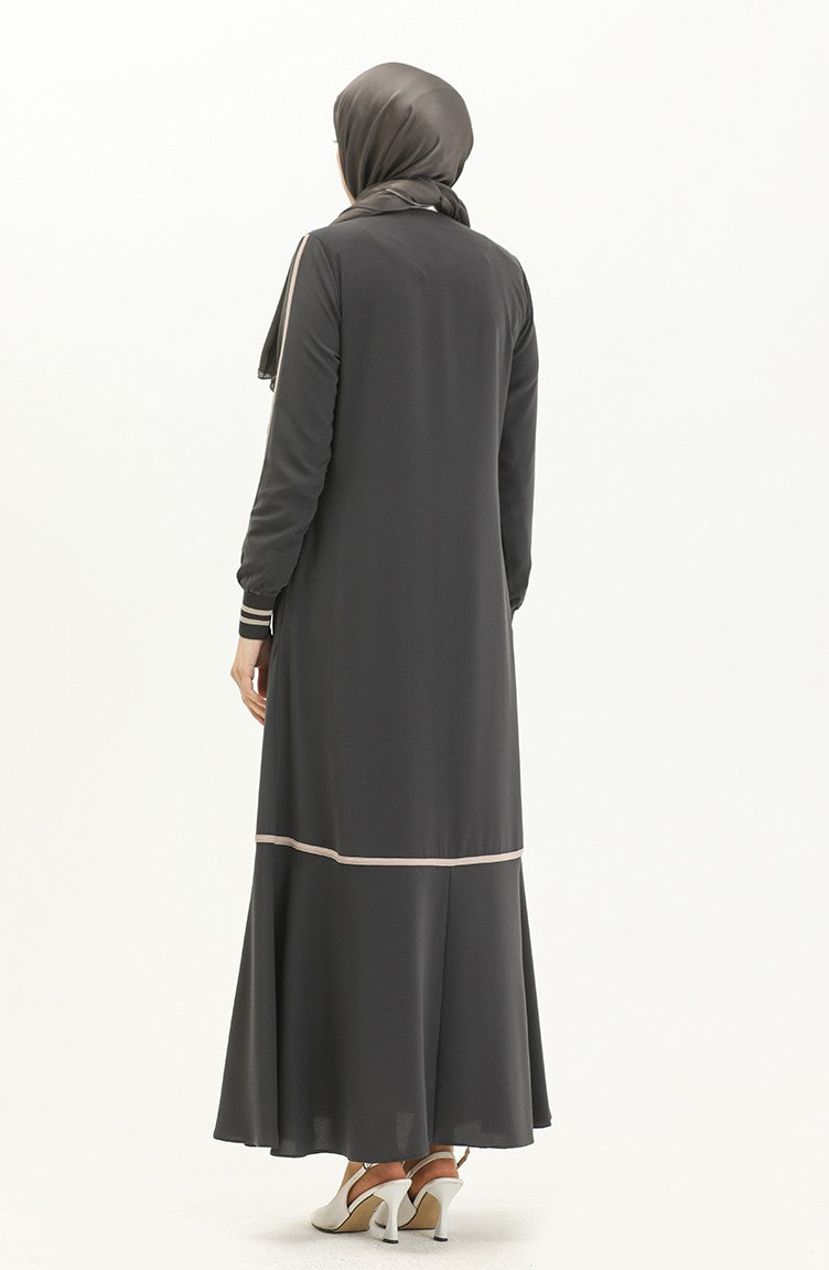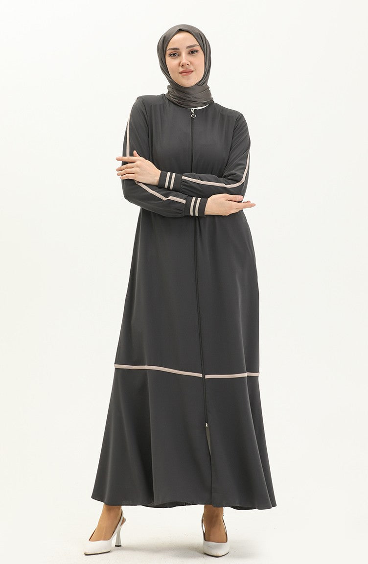 Abaya à Fermeture 5043-05 Gris 5043-05