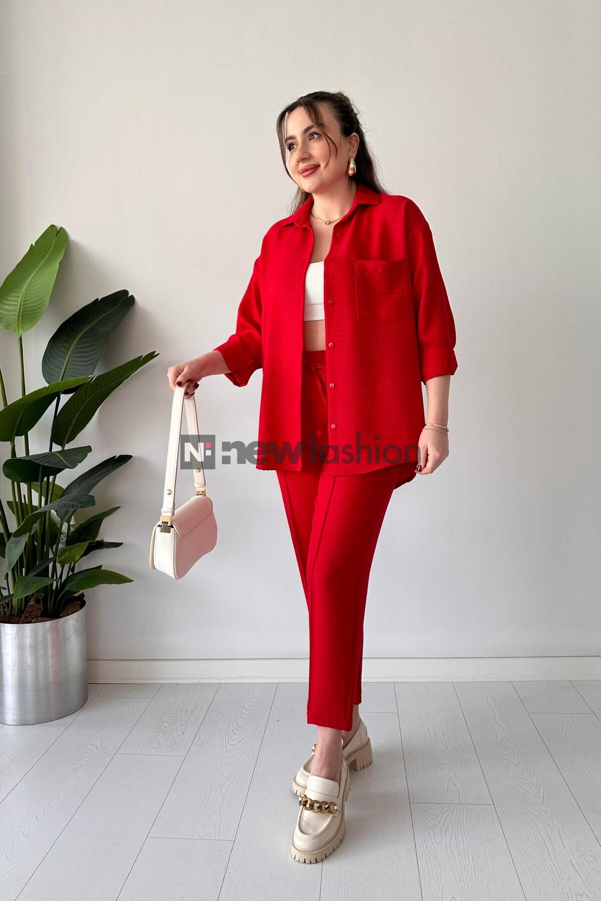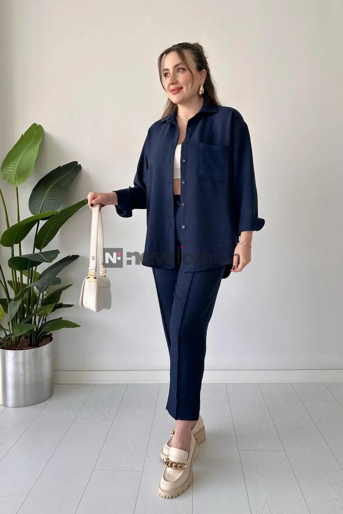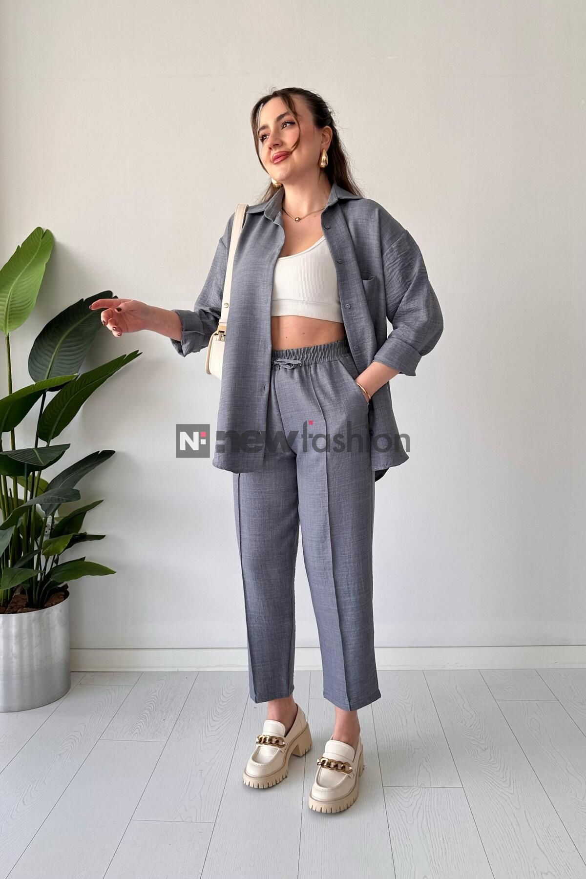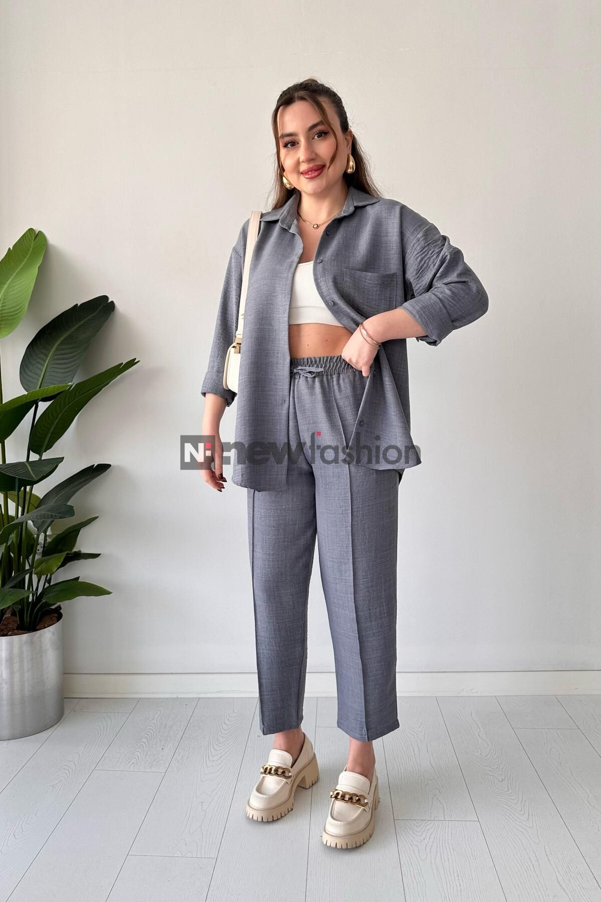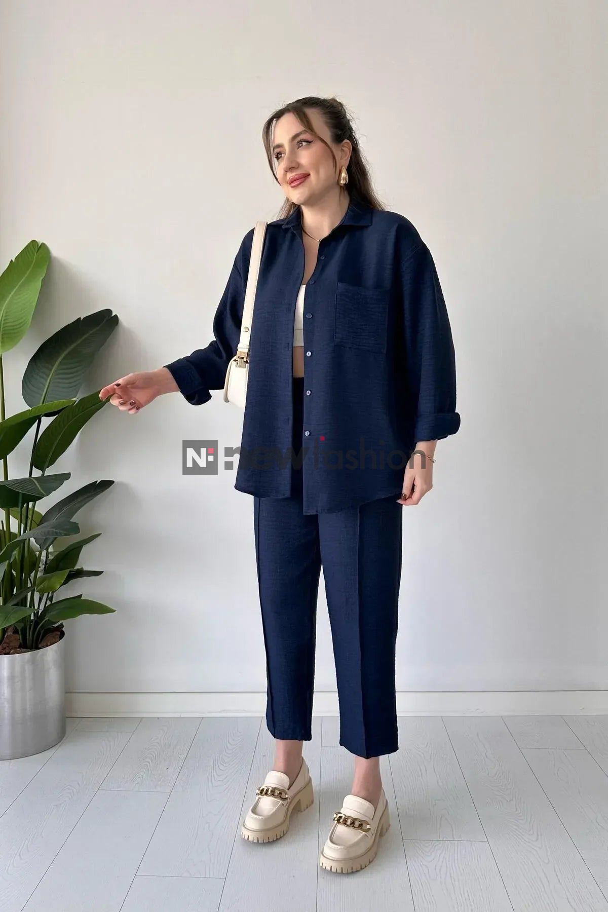 - تنسيق مثالي ومرن: يتكون الطقم من قميص طويل بأكمام قابلة للطي وبنطال مريح بخصر مطاطي، مما يجعله مناسباً للعمل، السفر، أو حتى النزهات مع الصديقات.